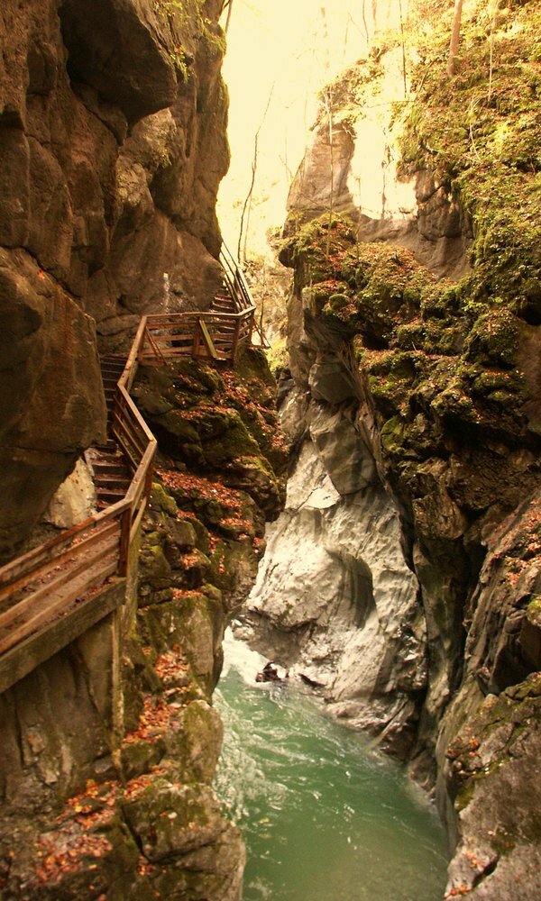 ’s Middags rijden we een mooie route naar de Lammerklam, een indrukwekkende kloof met houten bruggen en stromend water. We wandelen hier rustig doorheen en kunnen genieten van het uitzicht, zoals de High Bridge en de Dark Gorge.