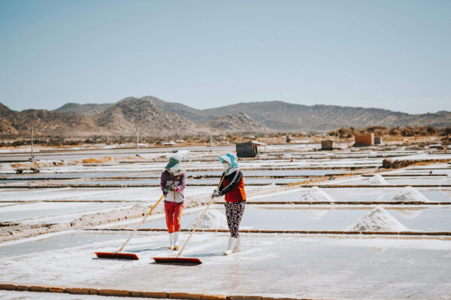 We leren tijdens deze reis meer over de zoutpannen. Dit is een plek waar uit ondiepe vijvers of vlaktes zout wordt gehaald.