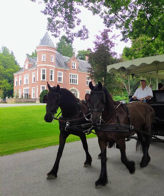 We stappen in een echte huifkar voor een ontspannen rit door de natuur. Terwijl de paarden rustig lopen, kunnen we genieten van het uitzicht over bossen, weilanden en dorpen. Het is een gezellige activiteit waarbij we samen zingen, lachen en lekker om ons heen kijken.