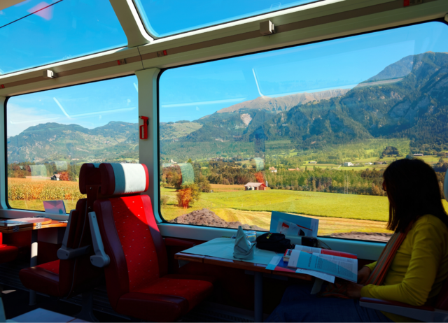 Zo maken we een afwisselende reis waarin we ontspannen in de trein, de natuur bewonderen op de berg en genieten van de sfeer in bijzondere stadjes.