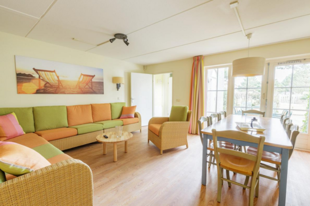 Ons huisje staat al voor ons klaar. Het is een ruime bungalow voor acht personen. Boven zijn er vier slaapkamers met fijne bedden. Iedereen slaapt in een 1-persoonsbed. Er zijn ook twee badkamers, één met een douche en één met een ligbad. In de woonkamer kunnen we gezellig bij elkaar zitten op de bank en tv kijken. De keuken is ingericht zodat we samen kunnen koken. En als het mooi weer is, gaan we buiten zitten op het terras. Natuurlijk is er ook gratis wifi, zodat we alles kunnen delen met het thuisfront.