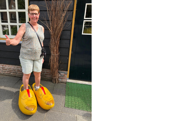 Daarna kleden we ons aan in de bekende Volendamse klederdracht. Met de hoeden, rokken en klompen zien we er allemaal even vrolijk uit. We maken een echte fotoshoot. Dat levert grappige en mooie herinneringen op die we mee naar huis nemen.