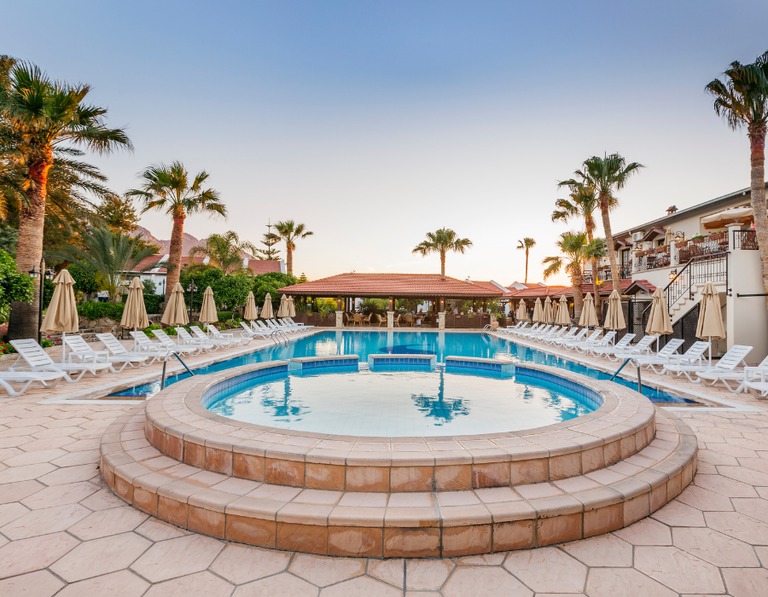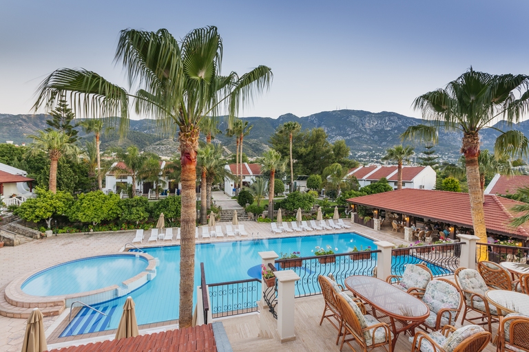Stel je voor: je wordt wakker met de geur van bloemen en het geluid van vogels. De zon schijnt, en in de verte zie je de bergen. Dat is Almond Holiday Village in Noord-Cyprus.