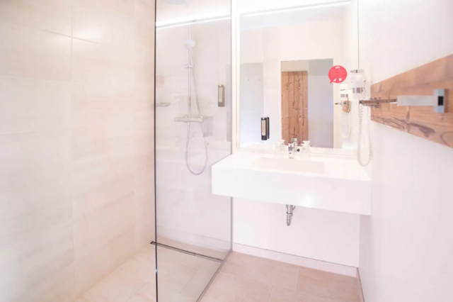 De kamers beschikken over een televisie en kledingkast waarin je al je kleren kan ophangen. Elke kamer heeft ook een eigen balkonnetje waarvan je van het prachtige uitzicht kan genieten. De badkamers beschikken over een inloopdouche, toilet, wasbak en föhn.