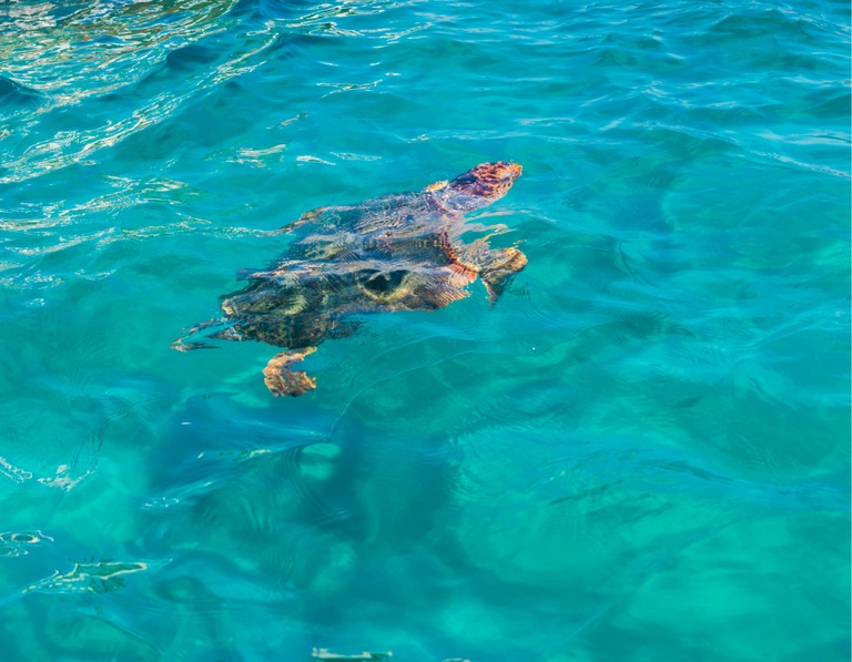 Een van de hoogtepunten van de reis is het spotten van wilde schildpadden. In het heldere water zwemmen deze bijzondere dieren vrij rond. Soms komen ze heel dichtbij en kun je ze goed bekijken. Het is een bijzondere ervaring die je niet snel vergeet.